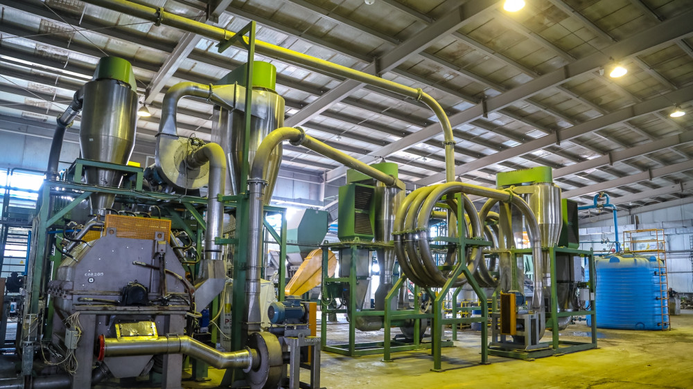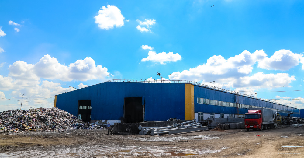 Собранный по нескольким точкам мусор из жёлтых контейнеров доставляют на мусороперерабатывающий завод, что неподалеку от рынка "Шанхай". Мощность завода предназначена на 700 тонн в день. При этом ежедневно на этот завод поступает больше 1000 тонн мусора и работники завода уже перерабатывают эту сверхнорму.