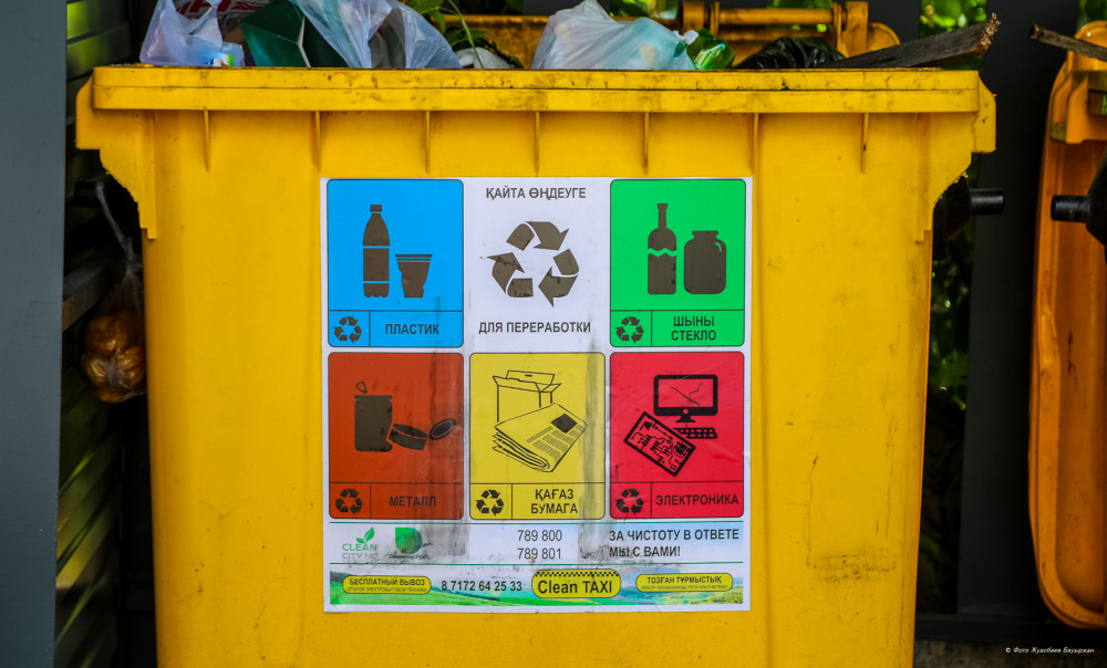 Так, в Астане с недавнего времени начали установку специальных контейнеров для раздельного сбора перерабатываемых твёрдых бытовых отходов (ТБО). Раздельный сбор ТБО осуществляется по двум фракциям "сухое" (пластик, бумага, стекло, металл) и "мокрое" (пищевые отходы и др.).