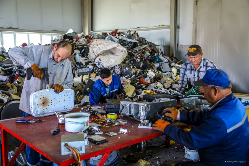 Кроме пластика на заводе есть переработка электротехники. В этом цехе работают несколько сотрудников из социально-уязвимых категорий населения.