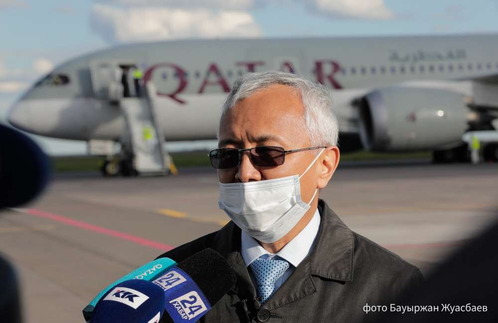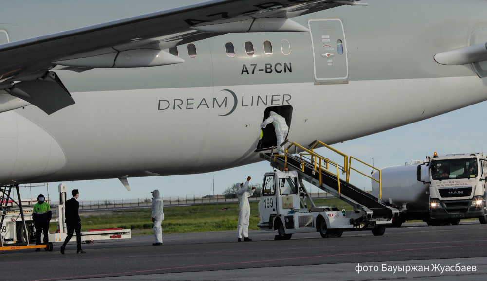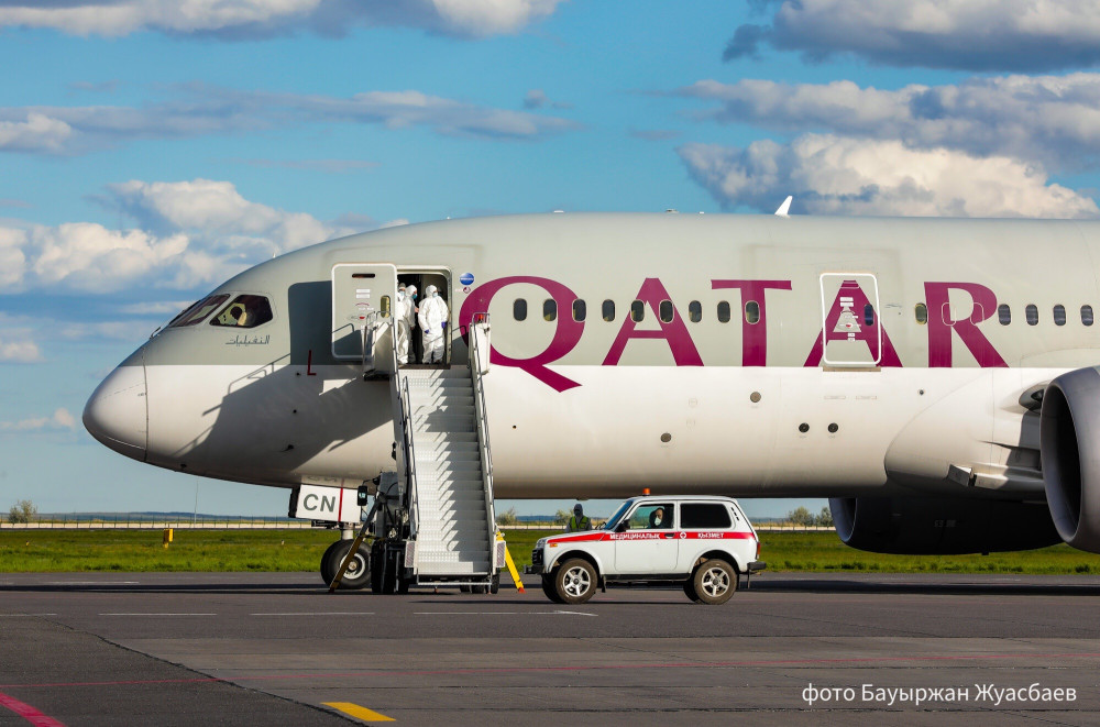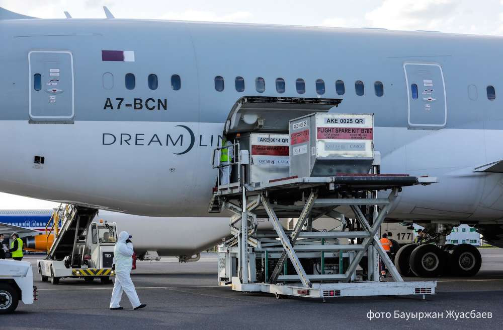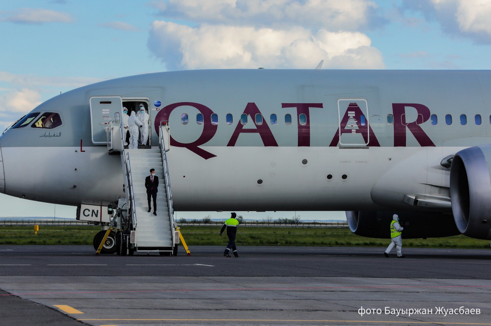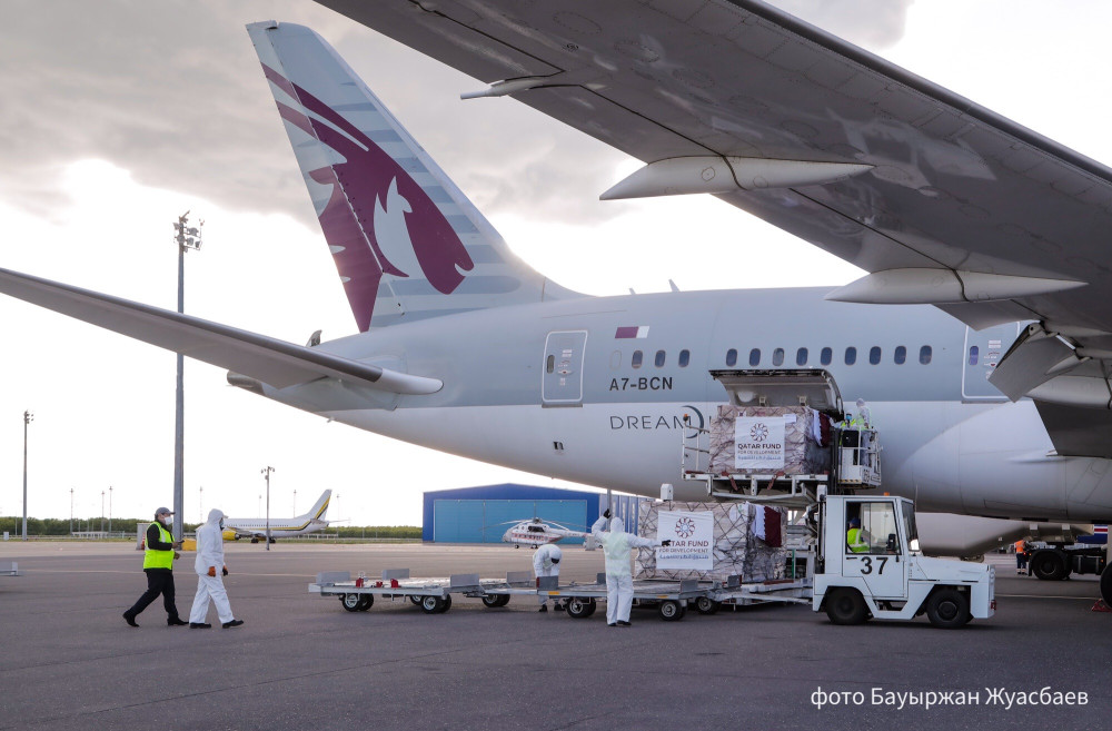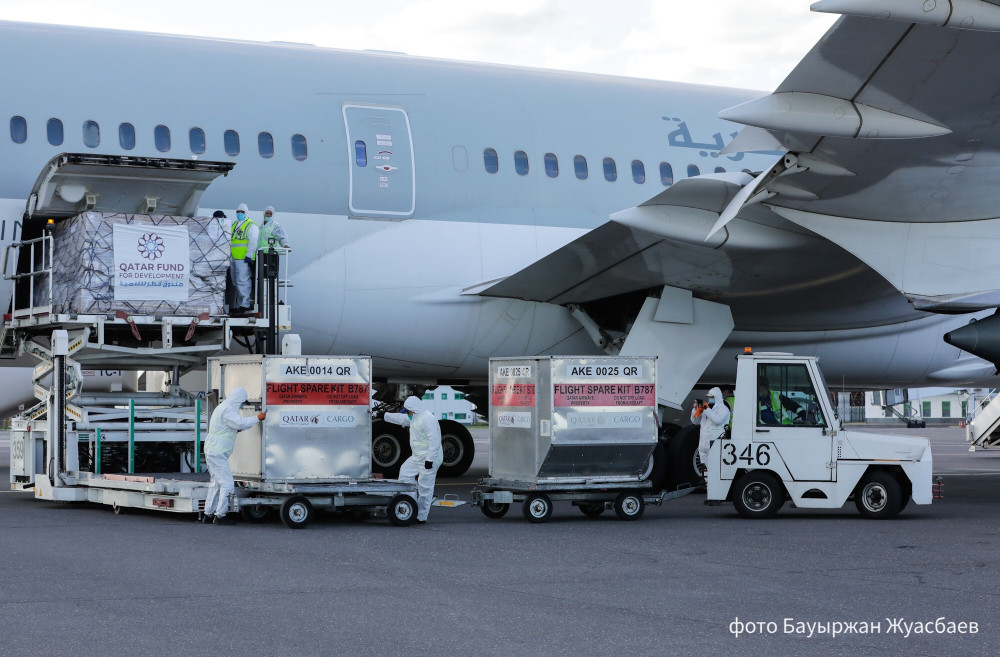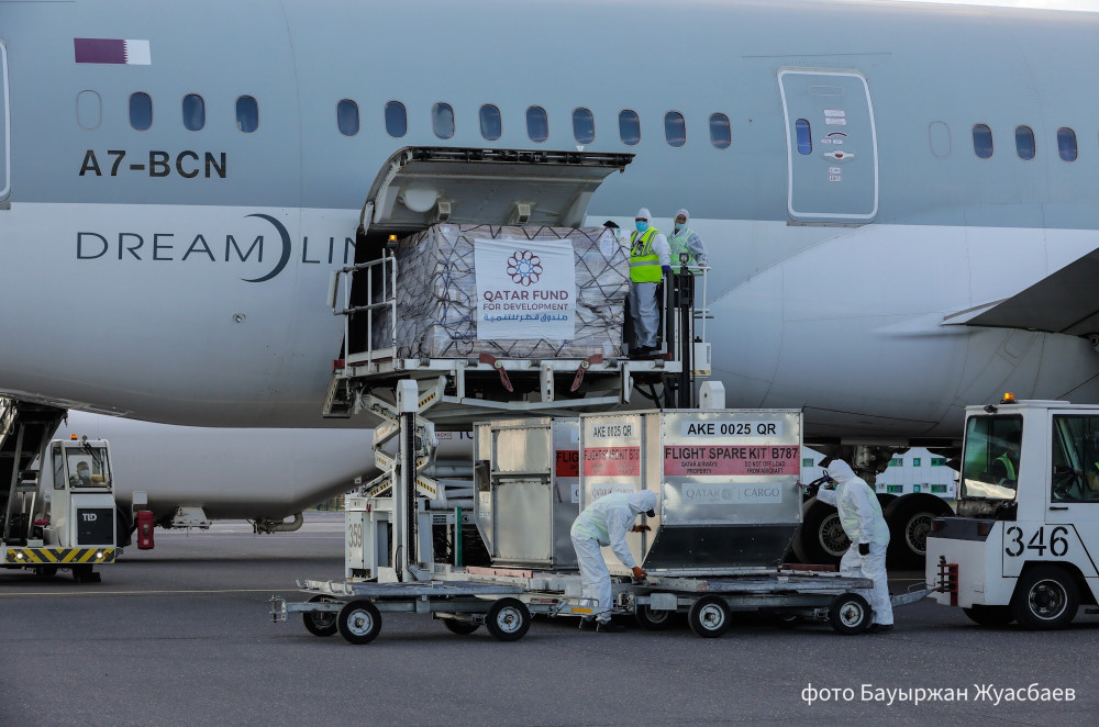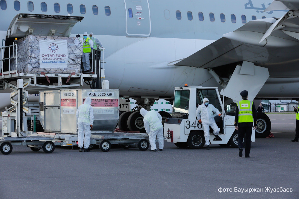 "Сегодня специальным рейсом авиакомпании Qatar Airways из Дохи в Нур-Султан прибыл гуманитарный груз общим весом 8.5 тонн, включающий в себя средства индивидуальной защиты – высококачественные респираторные медицинские маски N95, спецодежду, перчатки, защитные очки, халаты и иные медицинские средства", - сообщили в пресс-службе Минздрава РК.