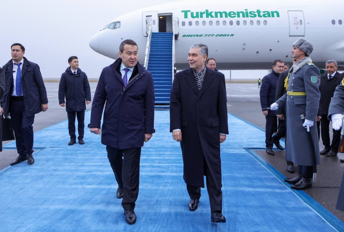 В аэропорту Гурбангулы Бердымухамедова встретил Премьер-Министр РК Алихан Смаилов.