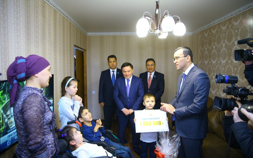 Еще один важный общенациональный проект, инициированный Председателем партии – это «Бақытты отбасы». Он разработан и направлен исключительно для поддержки малообеспеченных и многодетных семей. В Кокшетау Маулен Ашимбаев посетил семью Какжановых, которые воспитывают четверых детей (двое из них с диагнозом ДЦП). Ранее эта семья обращалась за поддержкой к партийцам, с просьбой оказать содействие в выкупе двухкомнатной квартиры по остаточному принципу.