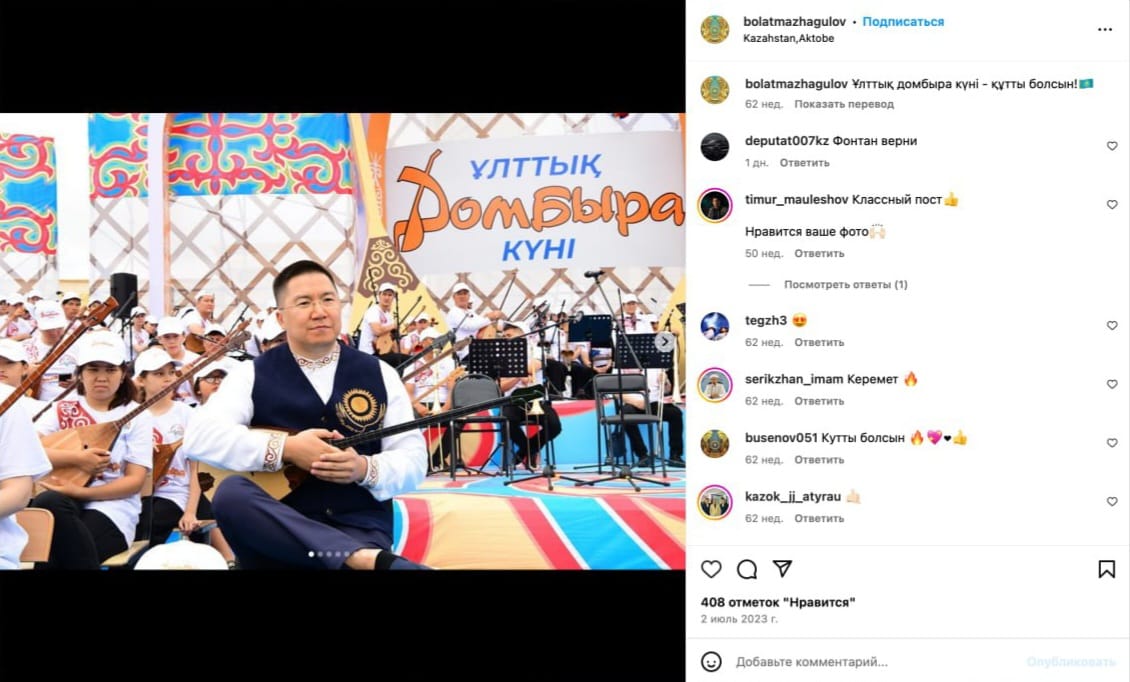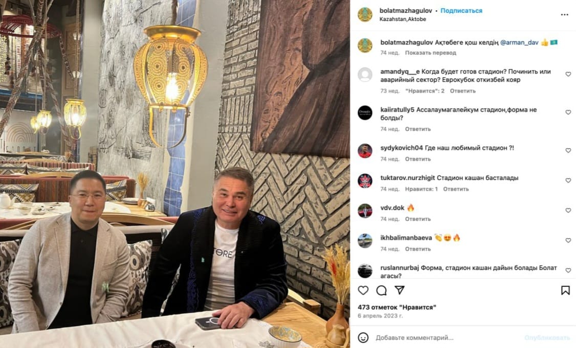 Фото: скриншоты с Instagram-страницы Болата Мажагулова