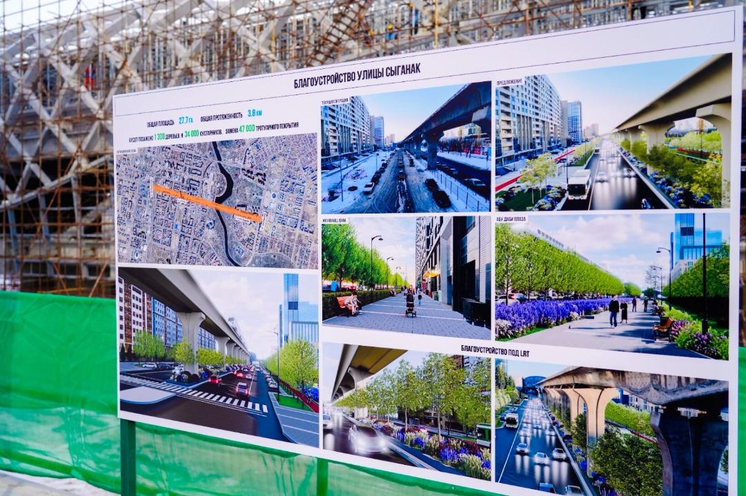 "До конца 2025 года планируется полное завершение верхнего строения пути, включая укладки рельсов, настройки систем сигнализации и связи, внутренняя и внешняя отделка станций, строительство депо с поставкой составов. Также планируется благоустройство подэстакадной части LRT по проспекту Кабанбай батыра и улице Калдаякова. Поэтапно будем благоустраивать маршрут вдоль LRT. К примеру, в этом году запланировано масштабное озеленение проспекта Кабанбай батыра — от аэропорта до проспекта Мангилик ел. На участке по улице Сыганак (от проспекта Кабанбай батыра до проспекта Тәуелсіздік) появятся деревья, велодорожки, в едином стиле уличная мебель в едином стиле. Рядом с ключевыми остановками LRT — у ТРЦ "Mega Silk Way", ботанического сада и ЖК "Поколение" — появятся новые общественные пространства для отдыха и времяпровождения горожан. Это будут удобные зоны с современным благоустройством, которые станут точками притяжения города", - написал аким столицы.