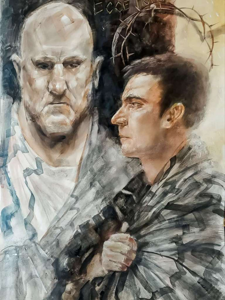 Его Понтий Пилат похож на тяжелоатлета, завсегдатая тренажерных залов. И он неотвратим как рок. Автор работы признается, что Понтий Пилат в его понимании — воплощение силы, власти, а в этом конкретном случае в его власти находится Иисус Христос.
