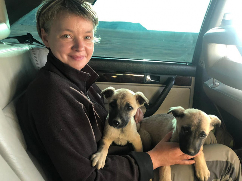 Анна Задура и Фесс Стон озаботились судьбой трех щенят, которых они нашли 19 октября во время тура по Мангистау, передает