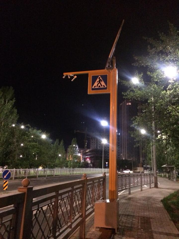 "Умный" пешеход срабатывает сразу как только человек подходит к нему. С помощью яркого и визуально объёмного освещения знака в ночное время, водитель заблаговременно видит на пути преграду, что позволяет остановить автомобиль заранее, а пешеходу безопасно перейти дорогу", - написал Ерлан Каналимов.