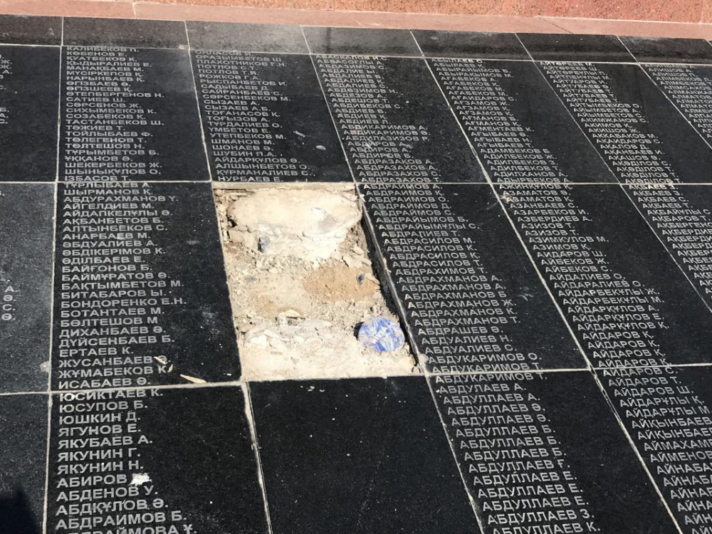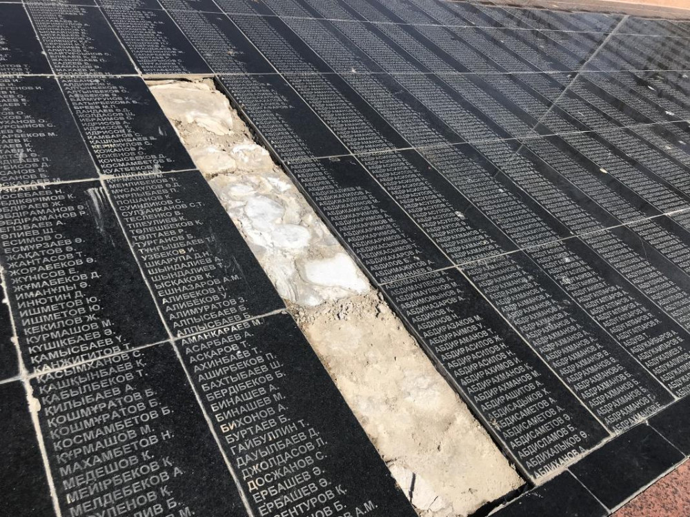 "К нам пришло распоряжение о необходимости дополнить эти списки, всего – 29 фамилий, но они разбросаны по разным районам. Поэтому и было убрано несколько плит. Сейчас все работы завершены, а плиты возвращены на место", — подчеркнул руководитель отдела ЖКХ Шымкента Нурлан Бектурсынов.