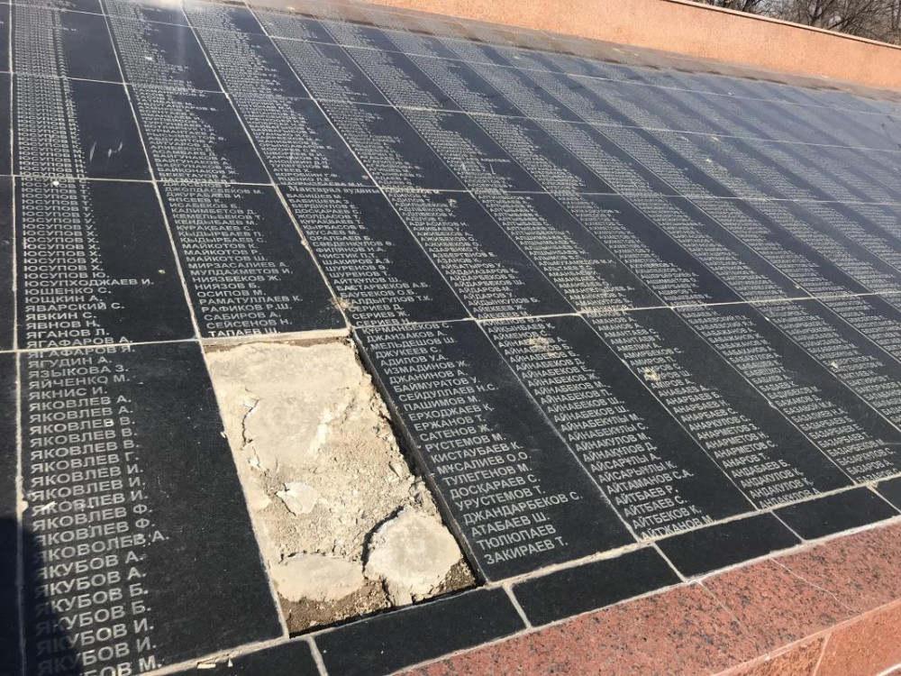 Плиты с именами героев ЮКО, воевавших в Великой Отечественной войне, с Мемориала Славы убраны для дополнения списков. Такое объяснение дали в городском акимате Шымкента, сообщает Оtyrar.kz.