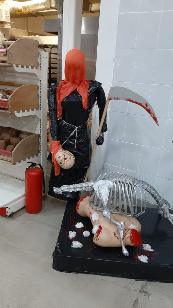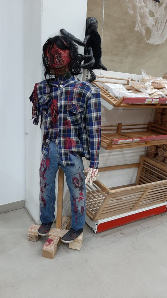 Несколько торговых домов в Караганде в связи с празднованием дня Хеллоуина оформили торговые залы жуткими восковыми фигурами с обезображенными лицами, с оторванными головами и человеческими телами без ног, рук и головы, чем вызвали негодование среди покупателей, передает корреспондент BaigeNews.kz.