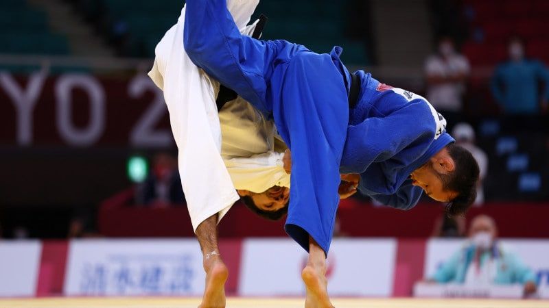 Дзюдоист Ануар Сариев во время схватки на Паралимпиаде в Токио. Фото: Рейтер.