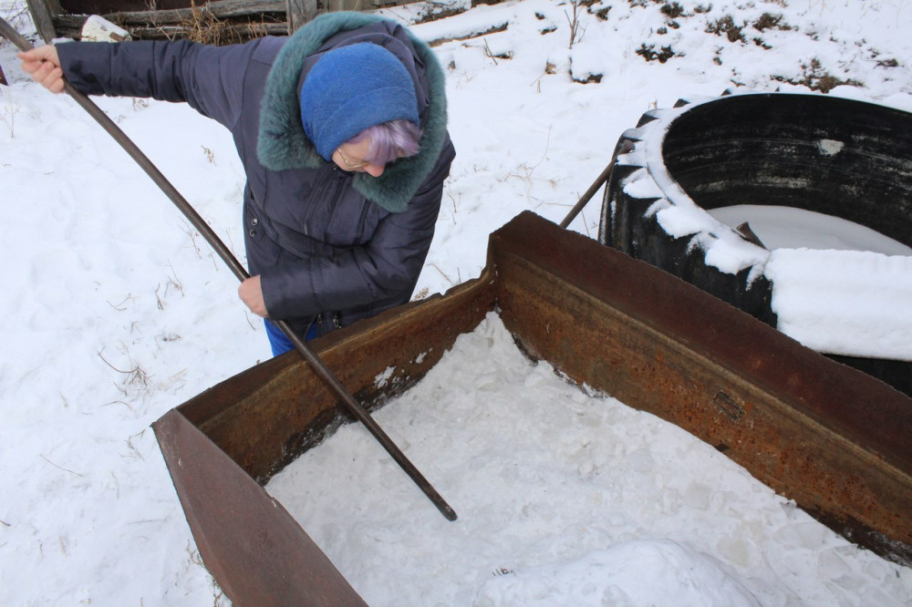 "Пьём зимой снеговую воду, кипятим, процеживаем и пьём. Ездить в Налобино за водой нам не на чем. Спасибо односельчанам, когда привозят хоть немного воды", — признаётся жительница села Нина Будникова.
