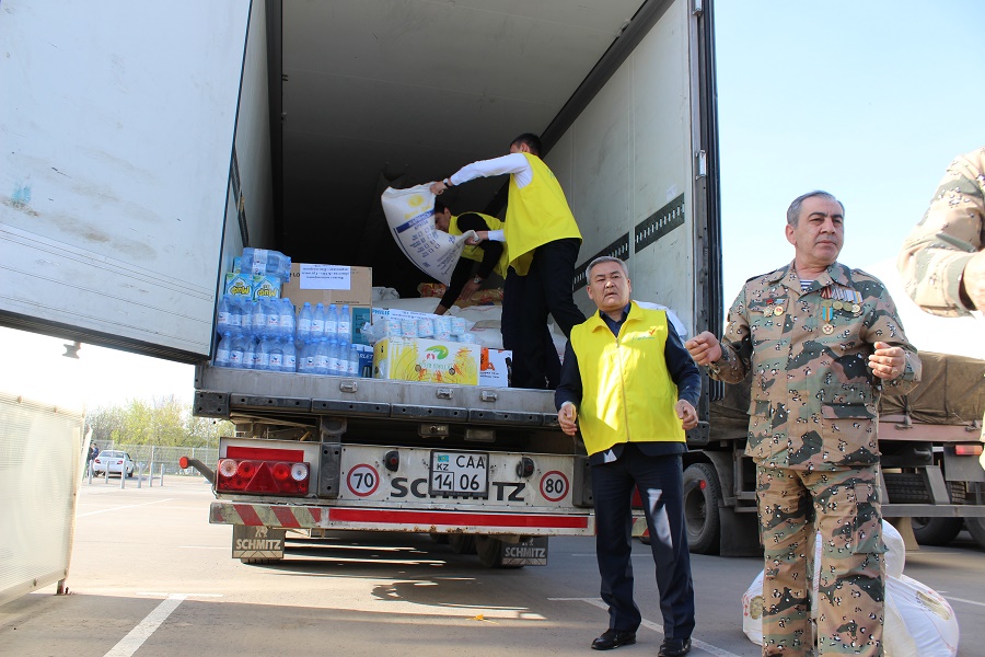 «Здесь продукты, бытовая техника: телевизоры, микроволновые печи, стиральные машины, одежда, постельное белье: много одеял и подушек и строительные материалы. Все новое. Денежные средства принципиально не собирались. Сбор помощи прошел при поддержке областного акимата, а также городов и районов и маслихатов всех уровней».
