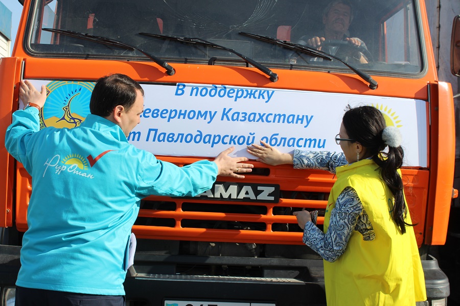 Колонна из шести большегрузов с логотипами «Нур Отан» по омской трассе покинула Павлодар, по пути к ней присоединятся еще два грузовых автомобиля из районов области. Планируется, что автокараван пересечет российскую границу, где в соседнем Омске ему обеспечат сопровождение. Конечным пунктом автокаравана станет Петропавловск, куда грузовики прибудут уже сегодня вечером, завтра утром груз распределят по пострадавшим от подтопления населенным пунктам.