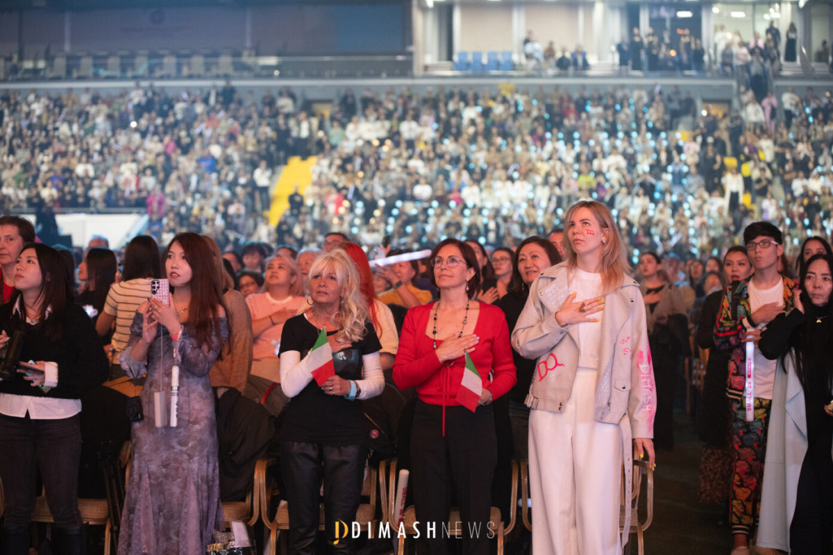 В первый раз на сольных концертах Димаша в начале программы прозвучал гимн Республики Казахстан в исполнении артиста и полного зала.