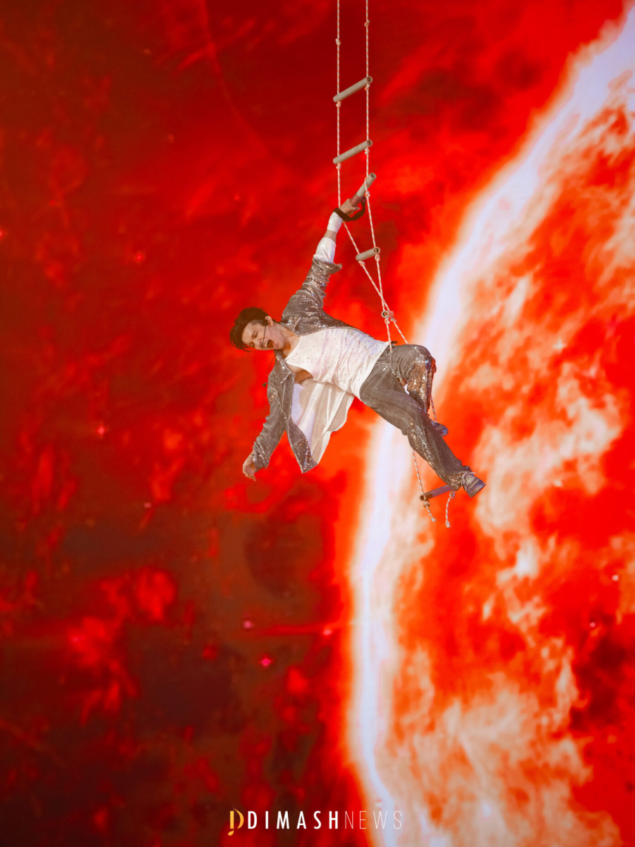 Начиная следующий блок программы, Странник нырнул за кристаллом в глубины моря и открыл новую дорогу к старинной истории о кобызе. Олжас Курманбек – неизменный солист песни "Stranger", повел свою глубокую историю, хор и оркестр добавили объема, и голос Димаша понес поклонников через октавы и века.