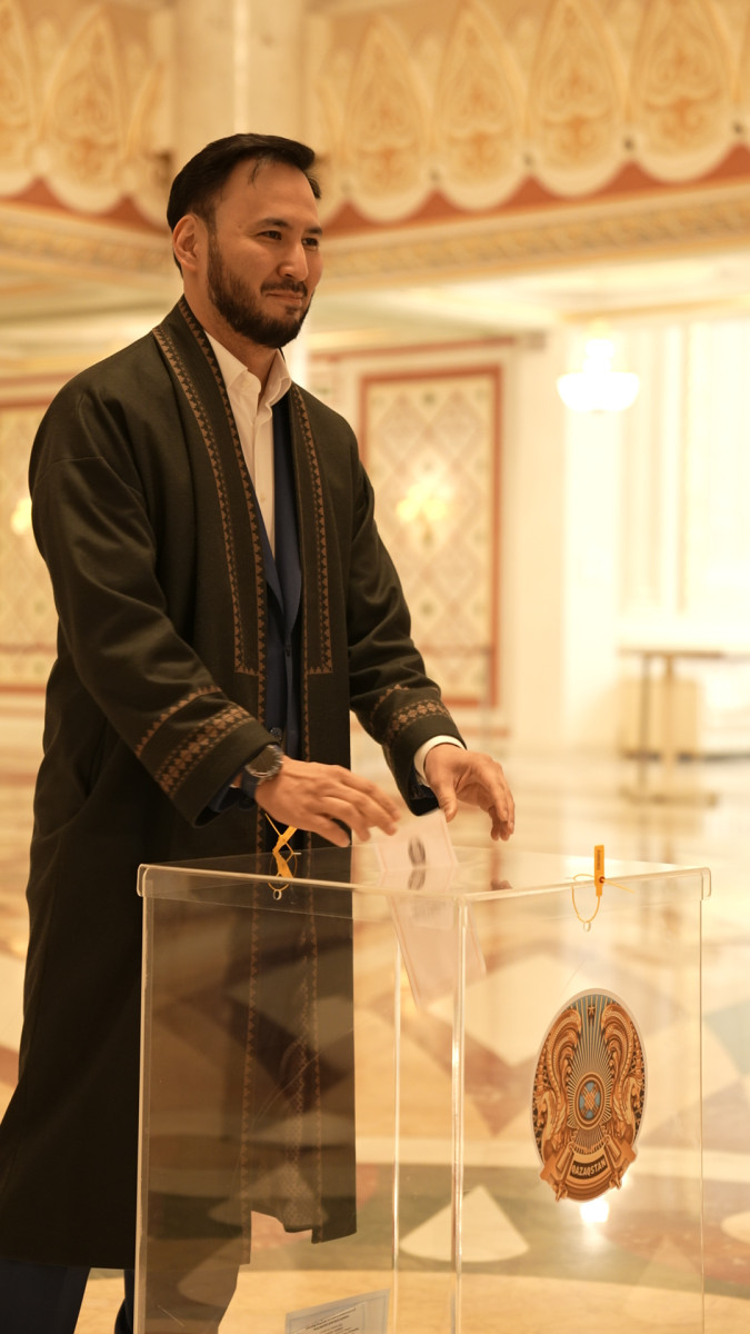 Лидер партии Respublica Айдарбек Ходжаназаров пришёл на избирательный участок в чапане. Он посоветовал казахстанцам носить национальную одежду не только на праздники, но и в будни.