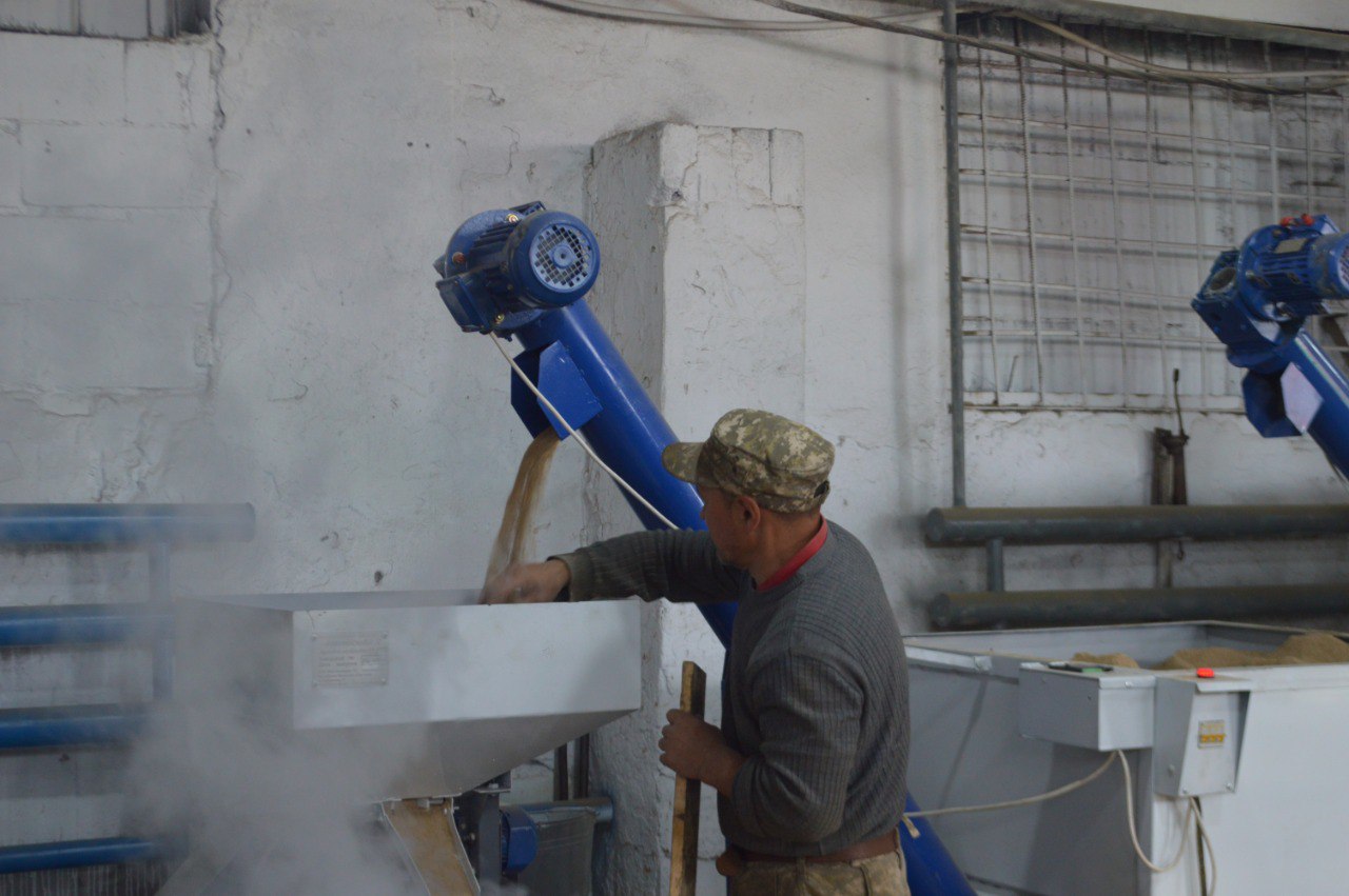 "Это вместе с пакетами, их же масса составляет где-то 40-50 килограммов. Сейчас вот собранное здесь стоит почти неделю, тут 7-8 тонн прессованного хлеба. В час это оборудование может производить 400 килограммов. Из тонны хлеба примерно получается 850 килограммов продукции. Потому что здесь есть испарение из-за высокой температуры переработки. Поэтому появляется весовая потеря. В мешки мы положили по 25 килограммов, но вот они постояли месяц и сейчас их вес около 23-24 килограммов", - рассказал бизнесмен.