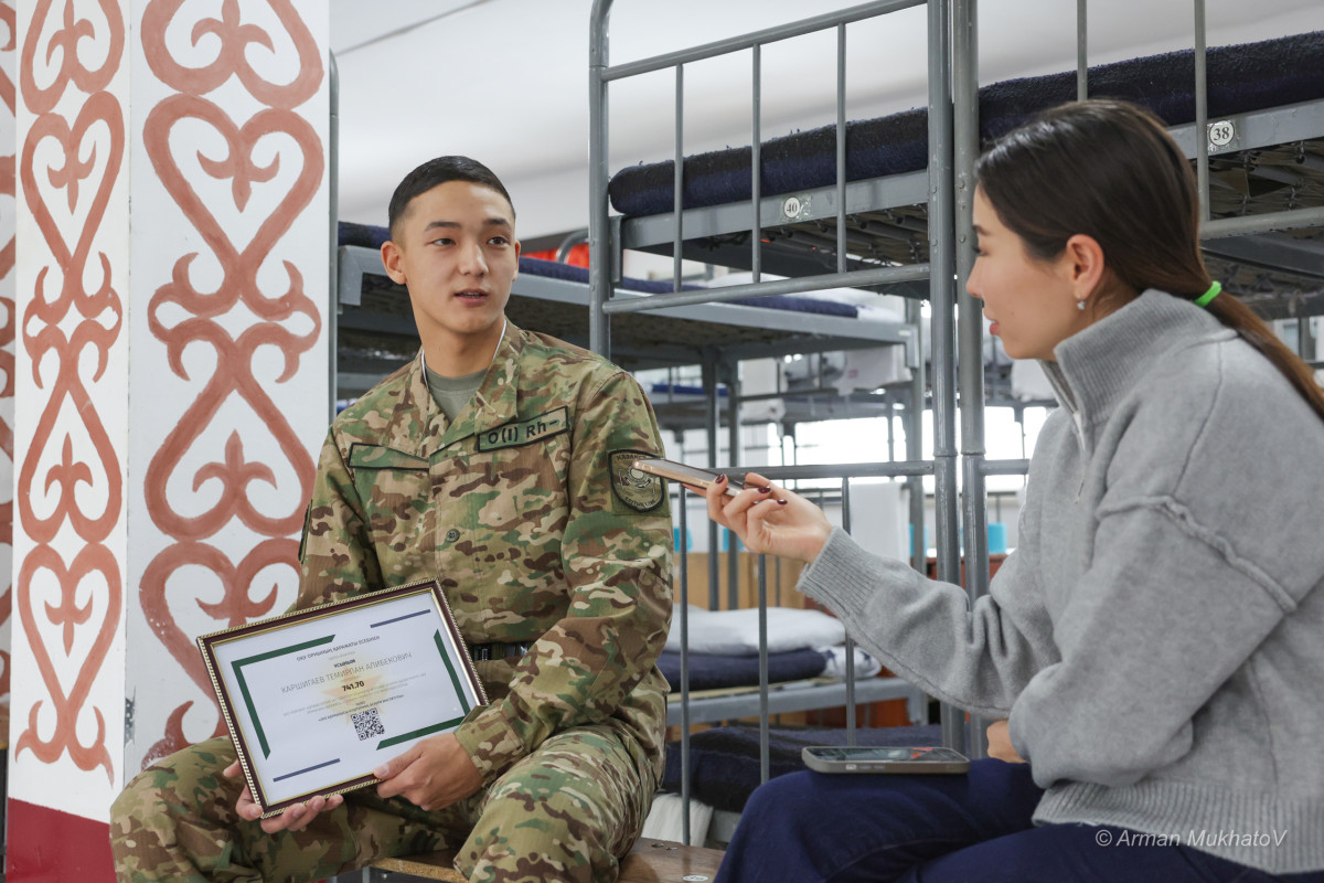 После прохождения службы в армии солдаты получают возможность пройти бесплатное обучение на военной кафедре учебного заведения без сдачи вступительных экзаменов. Этой возможностью воспользовался Айдарбек Амантаев, который с гордостью отслужил в Нацгвардии и получил сертификат.
