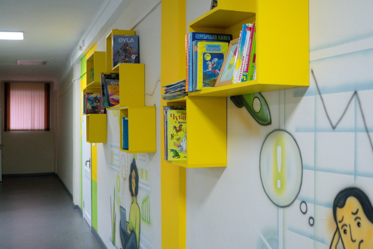 Чтобы заинтересовать детей, в коридоре школы установили стеллажи. Любой ученик может принести туда уже прочитанные книги из дома и взять что-то себе.