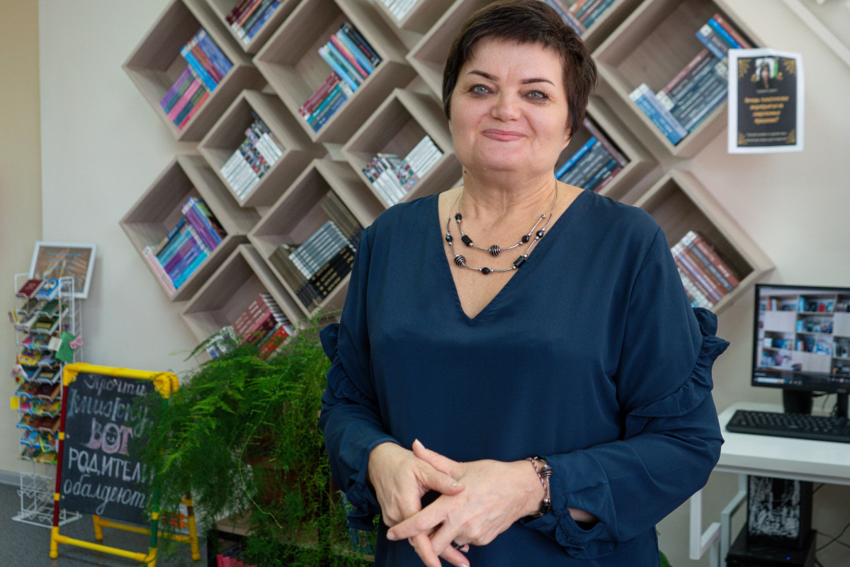 "У нас библиотека не заканчивается одним кабинетом. В коридоре амфитеатр, стеллажи и полки на стенах. Недавно в нашей школе были гости из Томска. Они удивлялись: "Это что у вас книги без учёта?". Да, можно подойти и взять любую. Мы туда их выставляем, я даже не знаю, какие из них берут почитать. Пусть берут, это же счастье, когда они читают", – говорит Марина Ануфриева.