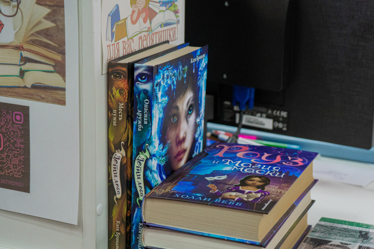 "У меня есть фишечка: я всегда говорю детям, что дверь в библиотеку никогда не закрывается. Читает в основном, конечно, начальная школа. Они у нас немножко не читатели, они "листатели". И тут нам в помощь – цветные книжки и книжки-малышки. Они очень красочные, необычного формата, поэтому привлекают к себе внимание. Дети постарше любят другие книги. Конечно, классика – это основа, без неё никуда, но без детской познавательной литературы нам тоже никак. Стараемся всё совмещать, у нас и "Гарри Поттер" есть. Выписываем детские журналы на казахском и на русском языках, находим спонсоров, которые покупают нам новые книги.Очень выручает буккроссинг", – рассказала библиотекарь.