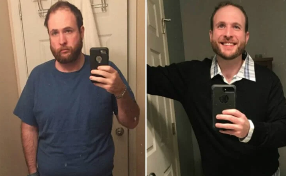 Человек до и после отказа от алкоголя. Кажется, этот парень сбросил пару десятков килограммов.