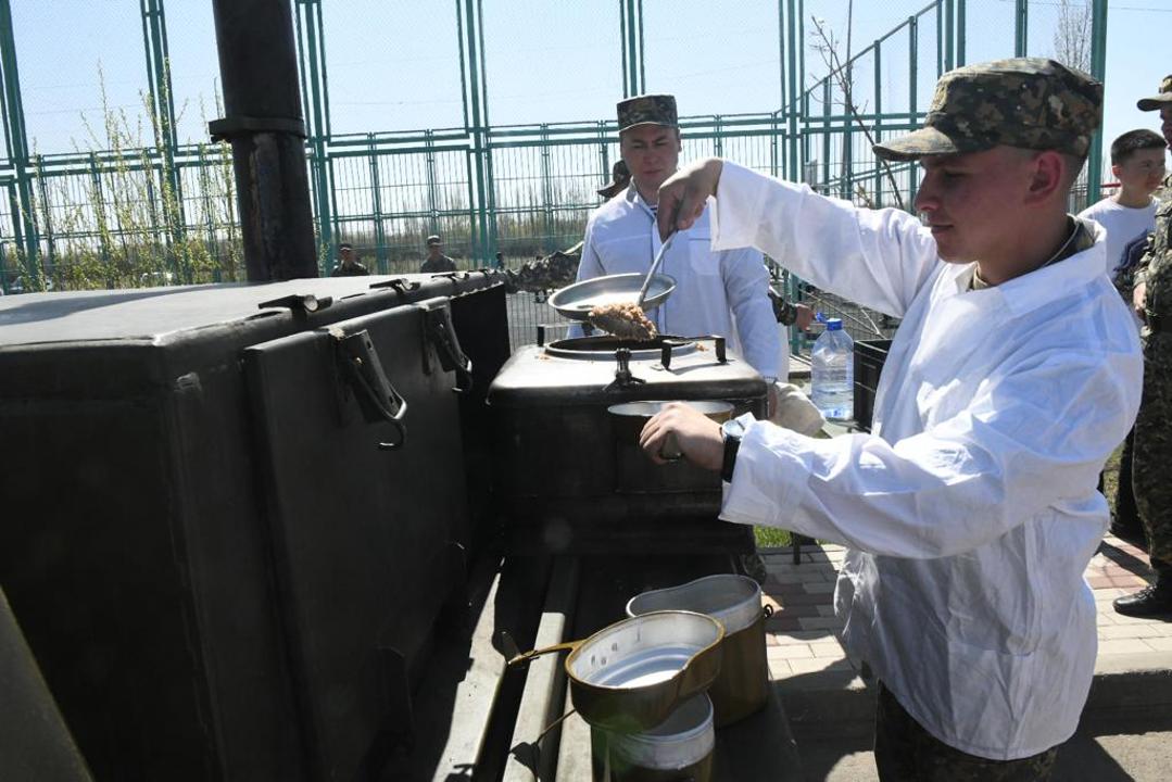После завершения концерта гостей угостили кашей, приготовленной на полевой кухне. Блюдо также готовили солдаты Национальной гвардии страны.
