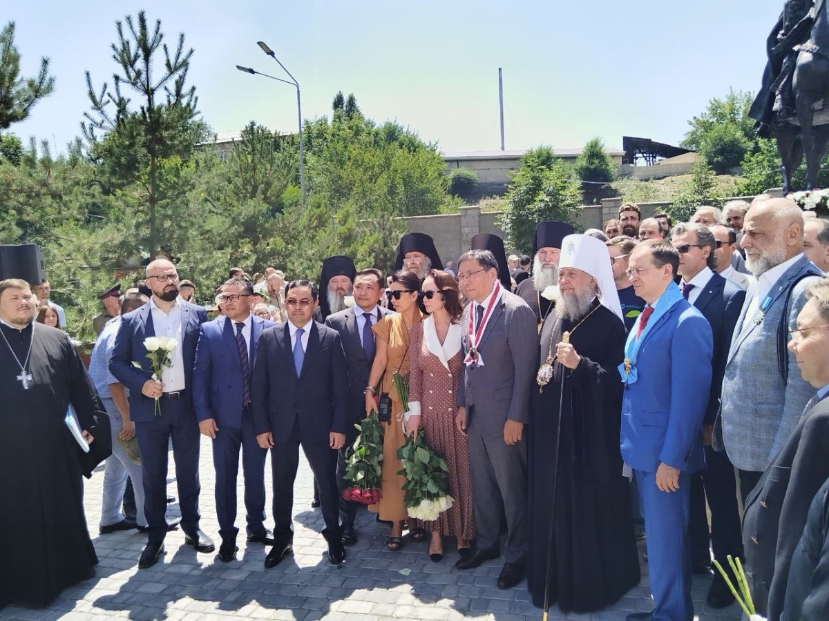 Мероприятие посетили представители Союза православных граждан Казахстана — казаки Семиречья, прихожане, а также аким Алматы Ерболат Досаев, его заместитель Арман Кырыкбаев, глава Управления культуры Алматы Гани Майлибаев, депутаты, из России приехал помощник Владимира Путина Владимир Мединский. Осветил новый памятник митрополит Астанайский и Казахстанский Александр.