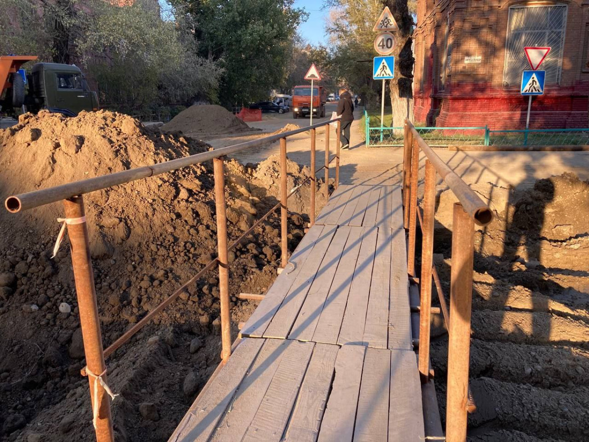 "На этом участке идёт новое строительство по проекту "Перемычка". Здесь строят новые сети, которые соединят котельные 103 и Габбасова для закольцовки системы теплоснабжения в центре города. Если выйдет из строя одна котельная, мы можем переподключить, запитать дома к другой котельной", - пояснил заместитель руководителя Управления энергетики и ЖКХ Данияр Корабаев.
