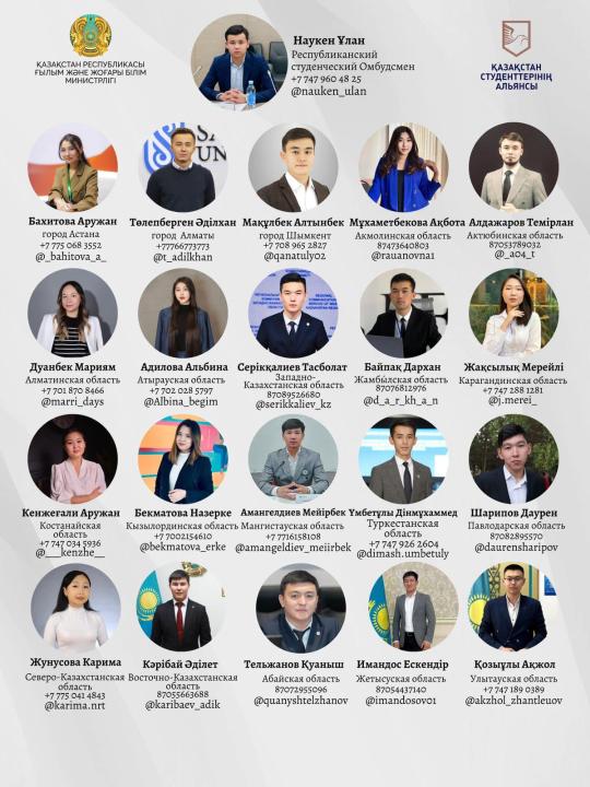 "Если у вас возникли проблемы в процессе обучения, есть вопросы или вы сталкиваетесь с различными ситуациями, вы можете обратиться к нашим омбудсменам. Они готовы оказать вам поддержку и ответить на все ваши вопросы. Также у них вы можете получить актуальную информацию о дополнительных грантах, которые выделают акиматы, фонды и университеты", - сообщили в ведомстве.