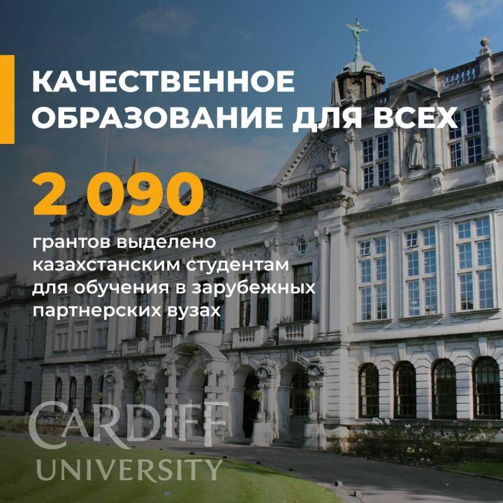 "На обучение в зарубежных партнерских вузах государством выделено 2 090 грантов для казахстанских студентов. На сегодняшний день тысячи студентов получают образование по 34-м специальностям, в их числе такие ключевые направления, как педагогическое, инженерно-техническое, искусственного интеллекта. На эти цели выделяются государственные образовательные гранты (совместные образовательные программы и программы двойного диплома) и средства инвесторов при поддержке государства в предоставлении условий для них.