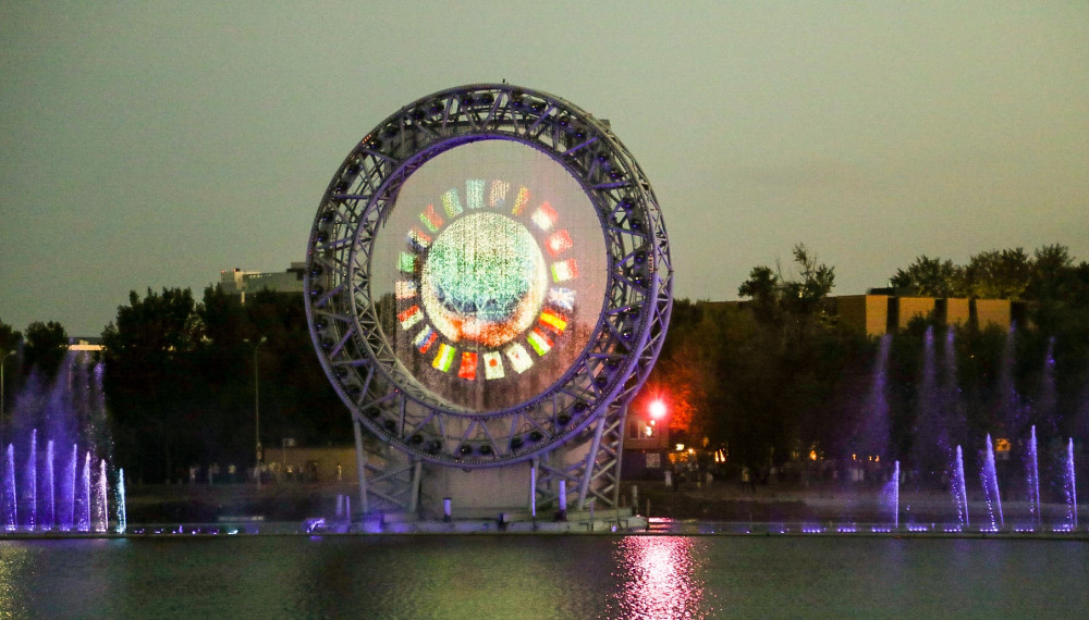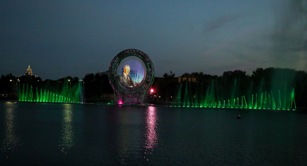 По вечерам на набережной проигрывается светозвуковое лазерное шоу, которое после обхода Арбата посмотрел Глава Государства.