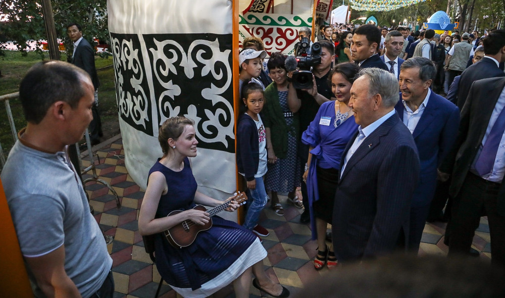 Кому-то повезло чуть больше с вниманием Президента. К ремесленникам, музыкантам и художникам Н.Назарбаев подходил лично, интересовался работой, слушал живую музыку и даже помог дорисовать портрет, о художнике и обладательнице портрета мы расскажем в другом материале.