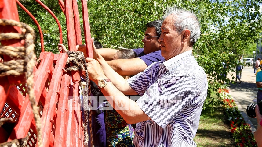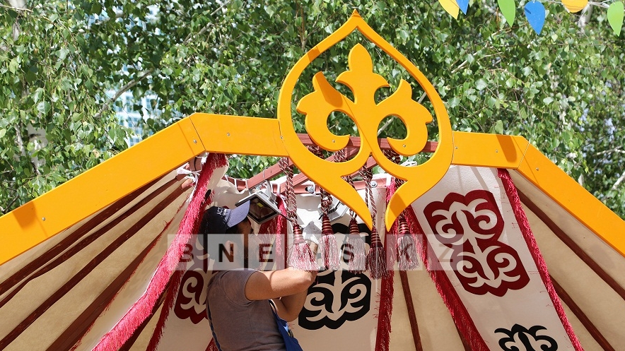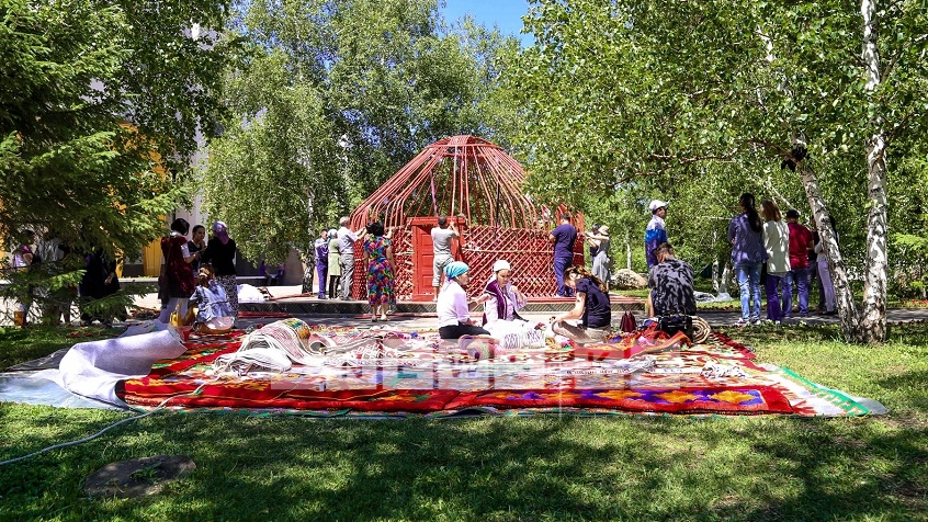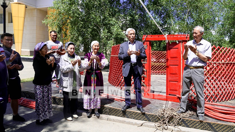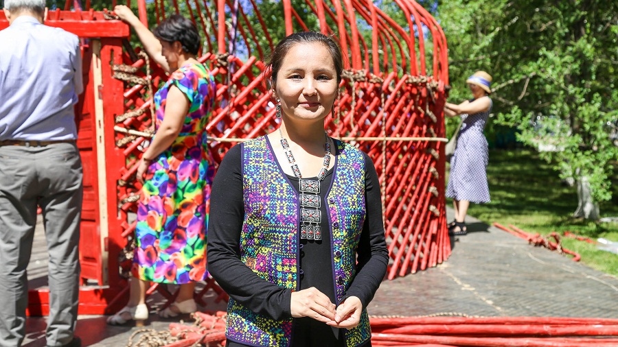 «Сегодня нашему Арбату преподнесли шикарный подарок - юрту. Ее привезли ремесленники из Кызылординской области, которые сейчас показывают, как нужно правильно ее устанавливать. Сейчас установили кереге – это стены юрты, после этого поставили дверь - сыркылдак. Мужчины подняли шанырак. Потом укрепляли уык - это деревянные жерди, которые держат шанырак, – поделилась столичный краевед Алия Ахмалишева.