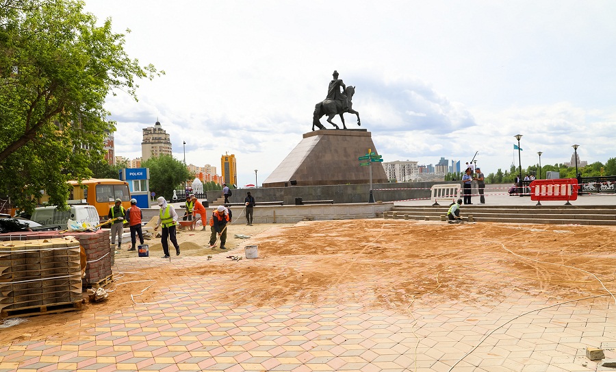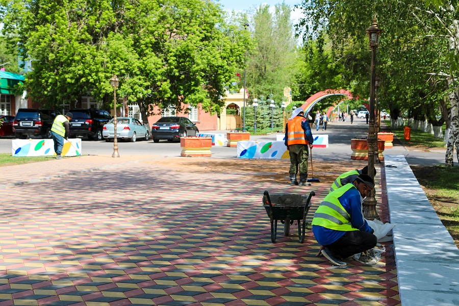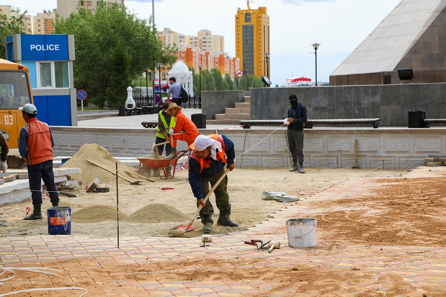 Сейчас на арт-площадке кипят ремонтные работы. Рабочие укладывают последние кирпичики брусчатки, устанавливают свет в юртах и доделывают бордюры.