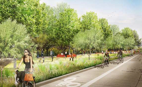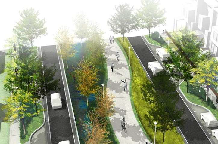 В этом районе сосредоточено много социального жилья. Планируется подобрать растения для создания многослойных композиций, привлекательных круглый год и создающих комфортную среду. Все условия будут созданы для комфортных пеших прогулок жителей и гостей столицы. Есть два варианта для скверов. Оба предусматривают наличие скамьи для отдыха на отдельной дорожке, велосипедную и основную прогулочную дорожки.