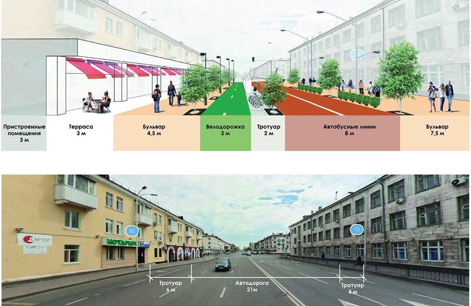 Район густо населен, здесь находится два университета, но недостаточно общественных пространств. Планируется убрать лишние полосы и создать комфортные условия для пешеходов, велосипедистов и выделенные полосы для автобусов. Для предотвращения въезда автомобилей на пешеходную часть планируется размещение боллардов.