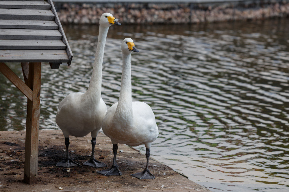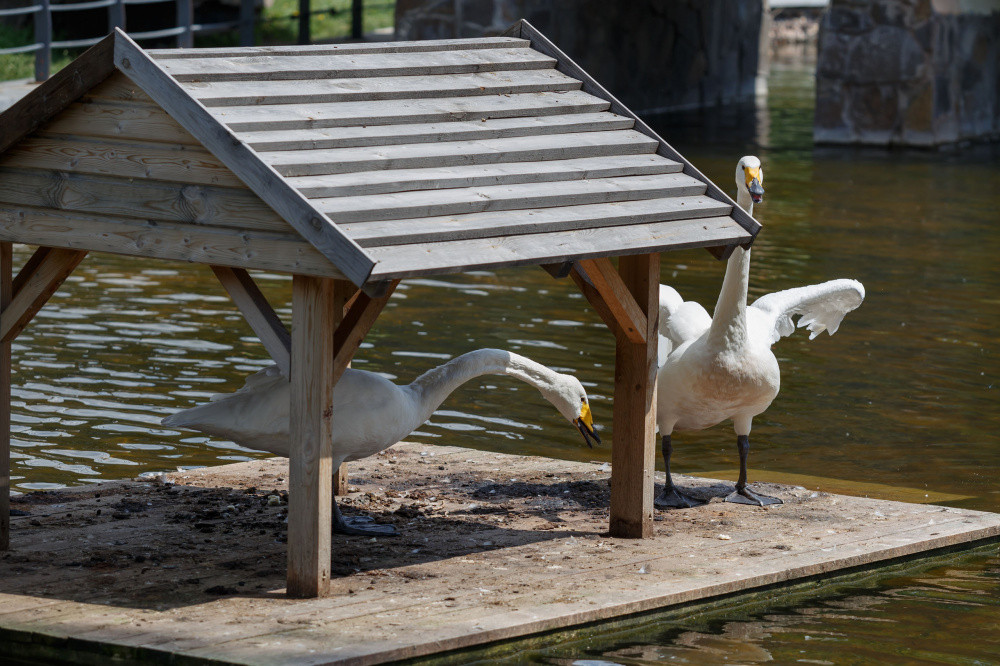 Светлана Старикова работая в парке ухаживает за лебедями уже более 30 лет. Сейчас в парке проживают 5 особей – 3 белых и 2 черных лебедя. Работник парка рассказывает, что совсем скоро в столичный парк завезут еще несколько лебедей. Интересно, что в Нур-Султан периодически привозят лебедей, отставших от стаи, либо больных, и команда животноводов помогает им, лечит и дает возможность улететь обратно.