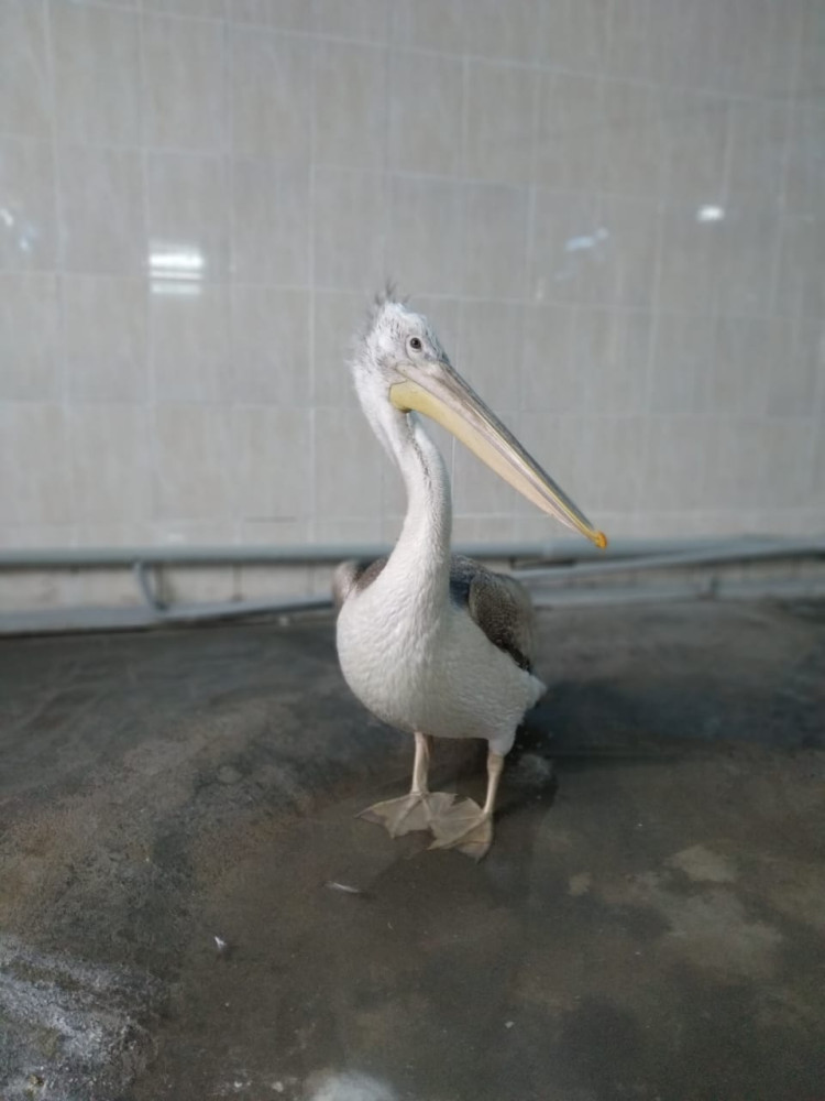 "Как говорят орнитологи, скорее, это поздний выводок, птицы выросли, но крылья у них не окрепли. И когда стая перелетала, молодой пеликан упал в Костанае. Там его и подобрала Елена из п. Затобольска", - рассказывает Айгуль Тулеева.