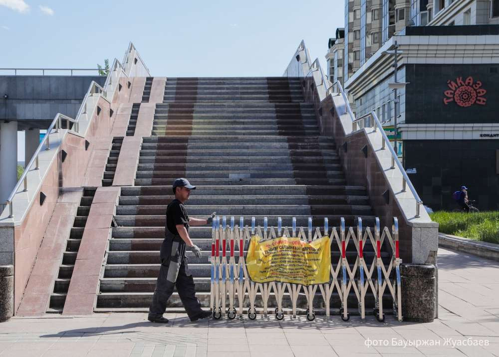 12 мая сняли ограничения на пути к главной достопримечательности столицы - монумента "Байтерек". Корреспондент BaigeNews.kz стал свидетелем уборки полицейских заграждений вдоль сквера.
