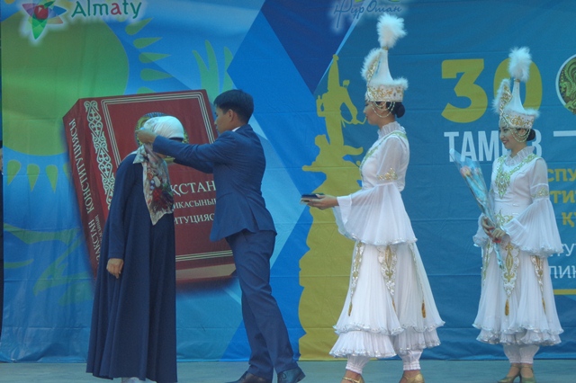 В Алматы также отметили праздник, организованный аппаратом акима Ауэзовского района в парке Family, где аким района Дастан Кайратулы поздравил жителей и гостей города с Днём Конституции Республики Казахстан. Затем он вручил многодетным матерям нагрудные знаки "Алтын алқа" и "Күміс алқа", грамоты и благодарственные письма акима района заслуженным труженикам, внёсшим посильный вклад в развитие района и города Алматы. Также он вручил удостоверения личности гражданам, достигшим 16 лет.