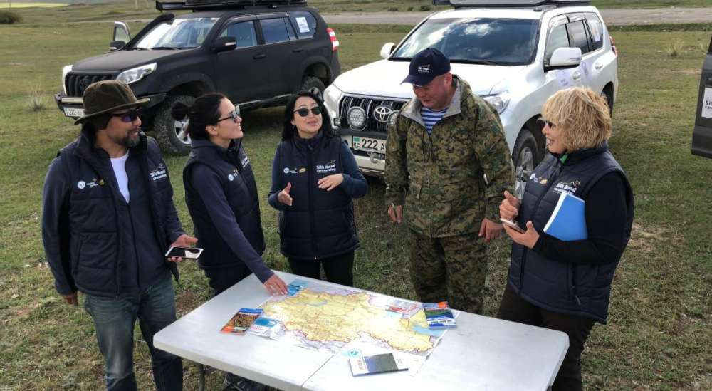 Ранее сообщалось, что в первый день экспедиции участники отметили первую точку в путеводителе в "Мегадаче" в Табаган. Далее вся команда экспедиции отправилась на вторую точку в урочище реки Или в "Танбалы Тас". Третью точку экспедиторы отметили в национальном парке "Алтын-Эмель".