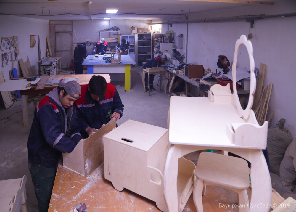 "Не вышли на самоокупаемость, вышли в минус и пролетели на очень большую сумму денег. Пока у нас, к сожалению, не ценятся такие изделия ручной работы, небольшие корзинки у нас стоили в пределах двух-трёх тысяч тенге. После этого опыта – перешли на столярный цех, стали производить мебель, открыли швейный цех", - отмечает Эмин.