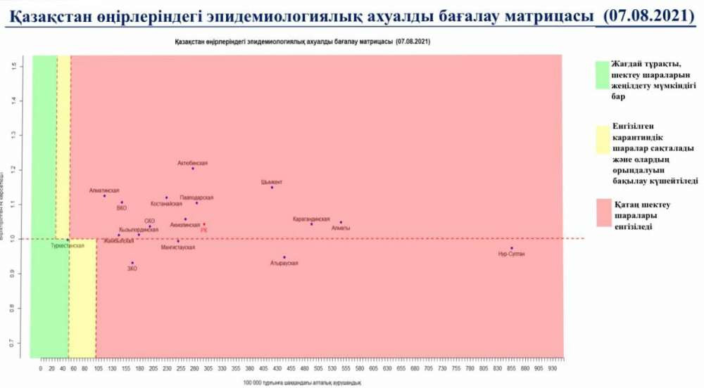 Как распределились регионы в казахстанской матрице оценки эпидситуации