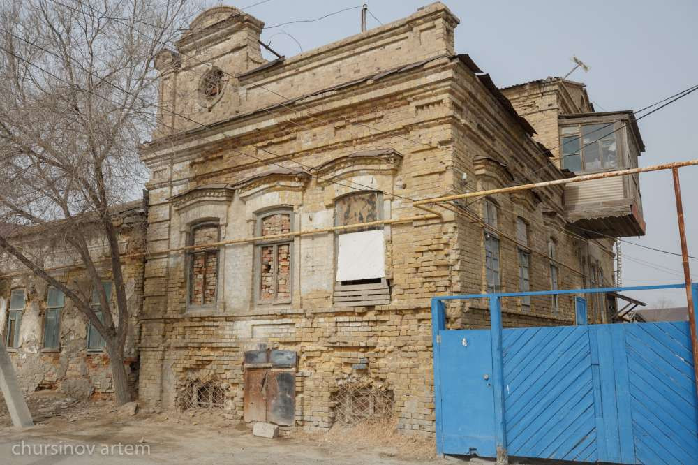 "Кажется, что дом вот-вот развалится, но это только кажется. Здесь очень крепкие стены. Старики рассказывали, что раньше в раствор для кладки кирпича добавляли содержимое куриных яиц, что придавало строению прочность монолита. Когда владельцы домов из числа физлиц начинают их ломать, без наличия специальной техники разломать стены невозможно. Это не современное строительство, здесь кладка литая в шесть рядов, даже в восемь рядов бывают кирпичи, а балки перекрытия невозможно обхватить руками. Вот где начинается синий забор, там тоже был подземный ход в сторону реки Урал, так рассказывали жители этого дома", – рассказал Лев Гузиков.
