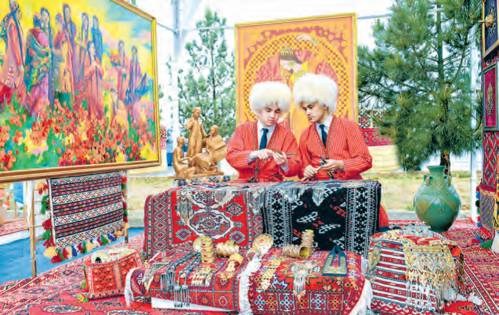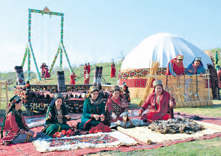 Праздничное пространство оформляется в традиционном национальном стиле. У туркменских кибиток располагаются игроки в шахматы, недалеко меряются силой и ловкостью молодые палваны, ряд ремесленников представляют самобытные изделия из кожи, шерсти, дерева, керамики, мастерицы демонстрируют свои умения в вышивке, ковроделии.