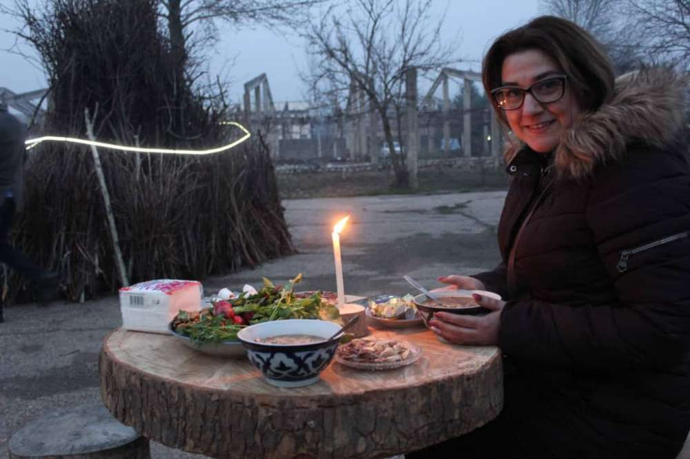 "Нооруз всегда празднуется с размахом по всей республике. Обычно на главной площади устраивают массовые празднества — танцы в национальных костюмах, устанавливают юрты, играют национальную музыку и, конечно же, угощают главным лакомством праздника — сумолок, который там же на площади и готовят.