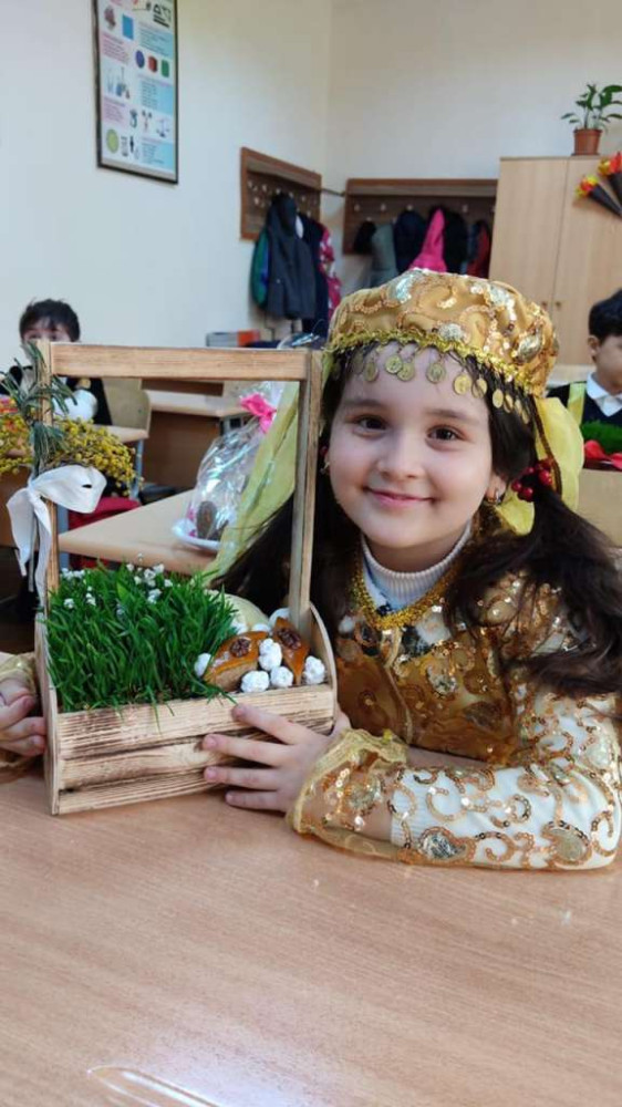 Его посещает президент с первой леди — общаются с народом. Там же происходит театрализованное представление. Но люди также собираются и во дворах, готовят блюда и поздравляют друг друга. На фото — моя внучка Селин. В школе они устроили костюмированное представление в честь Новруз байрам.