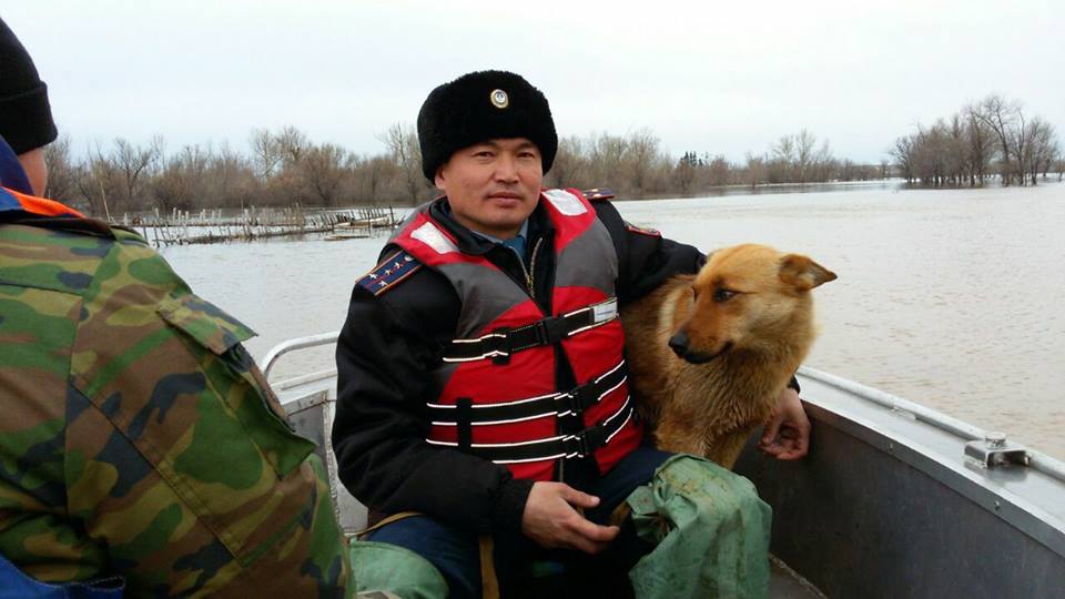 «Собака почти полностью была в воде, и мы не могли ее выманить с затопленного двора. Это произошло в селе Чкалово. По самую шею в воде находилась, охраняла дом. Мы еле ее выманили из двора сухарями, по нескольку раз к ней возвращались. Потом Дуся с нами подружилась, очень верная охранница!», - рассказывает А. Алпысбаев.